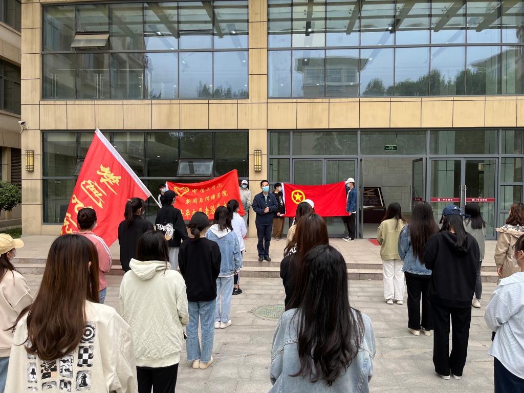 5月8日上午11时,新闻与传播学院青年志愿服务队负责人王霖喆召集青年志愿者支队全部成员于三号组团楼西门进行宣誓活动,新闻与传播学院团委副书记张红林、正科级组织员刘彦明老师参加此次活动。