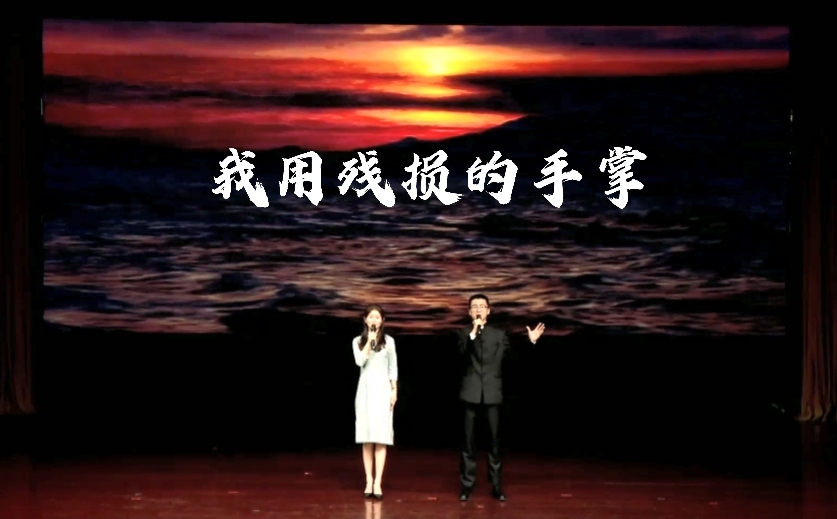 由播音与主持艺术专业教师梁亚宁、时燕子指导,播音与主持艺术专业2019级学生赵羿猛、乔祎迪朗诵的戴望舒作品《我用残损的手掌》,以扎实的语言功底,表达了作者对祖国命运的关切,歌颂了人民坚贞不屈的精神。